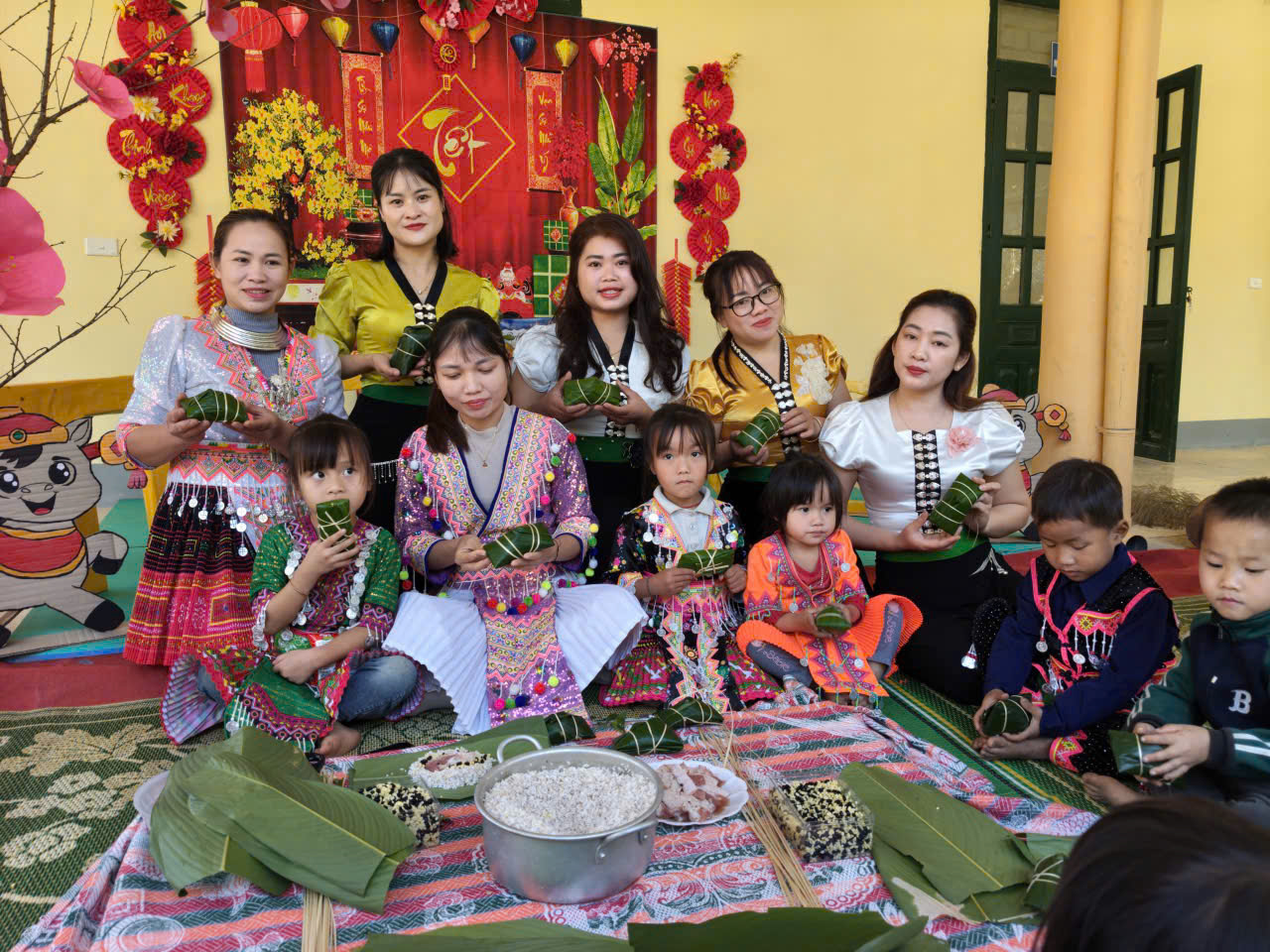 Chương trình còn tái hiện không gian Tết quê với mâm ngũ quả, cành đào, trang phục dân tộc . Đây là dịp để trẻ được tìm hiểu về phong tục đón Tết của dân tộc mình, bồi dưỡng lòng tự hào, ý thức giữ gìn và phát huy những giá trị văn hóa tốt đẹp của quê hương.